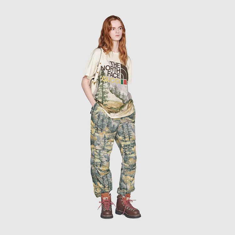 - Ivory heavy cotton jersey With The North Face x Gucci trail print