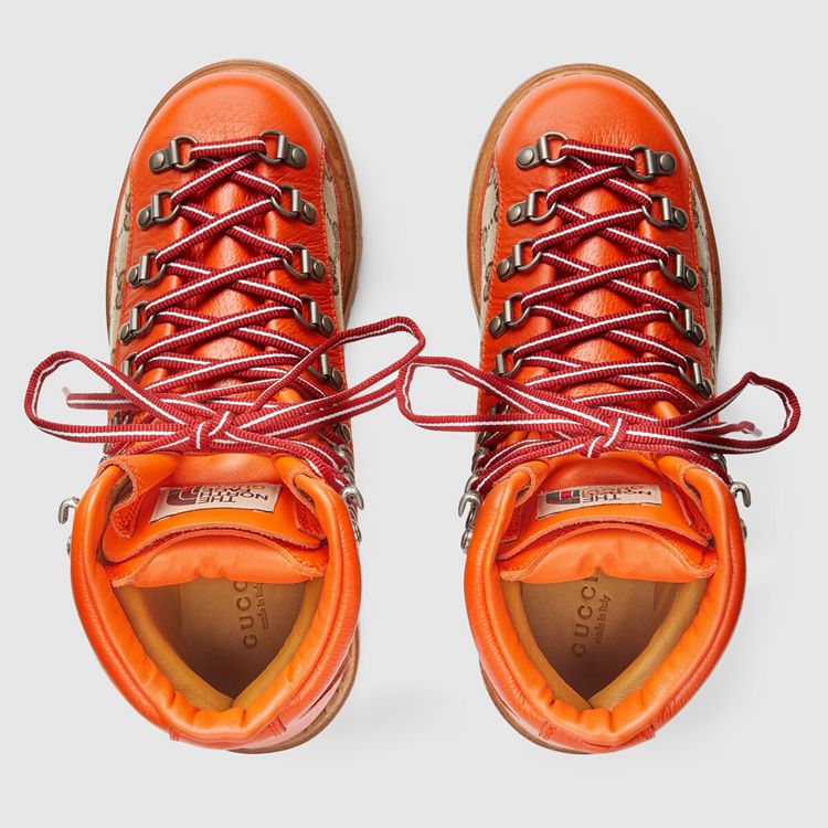 Style 679927 18A40 7570 This pair of boots is Part of The North Face x Gucci collection, a collaboration connecting two brands With similar history and values in celebration of The spirit of exploration. The pieces are characterized by a selection of bright colors and prints featuring The North Face x Gucci logo, flowers and woodland- Inspired motifs.