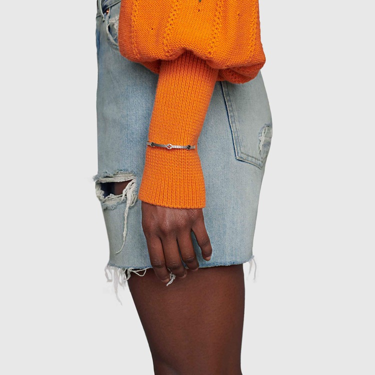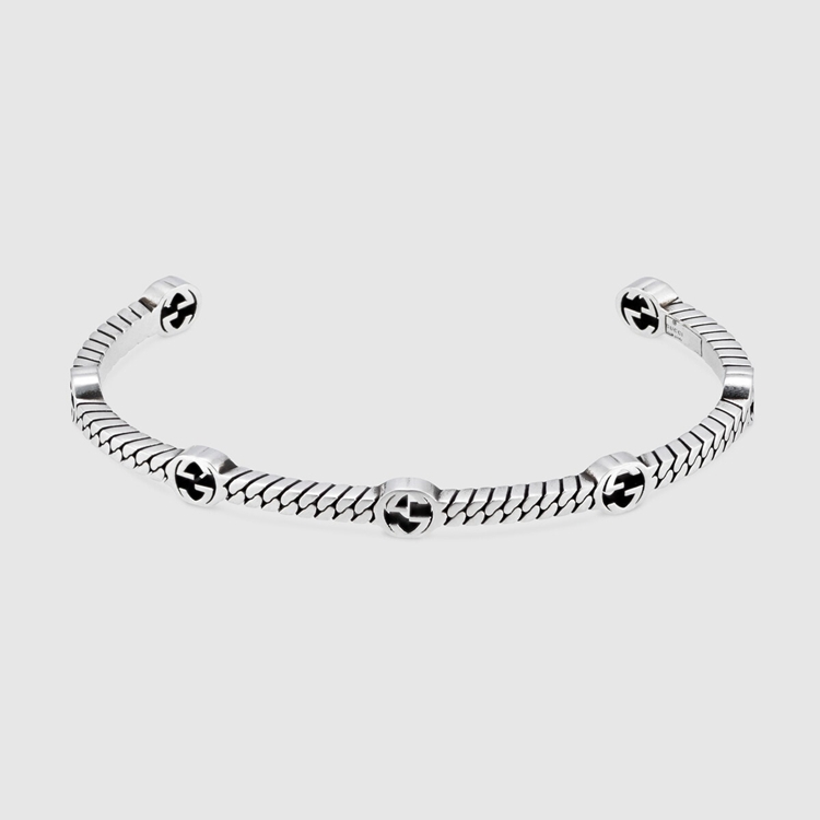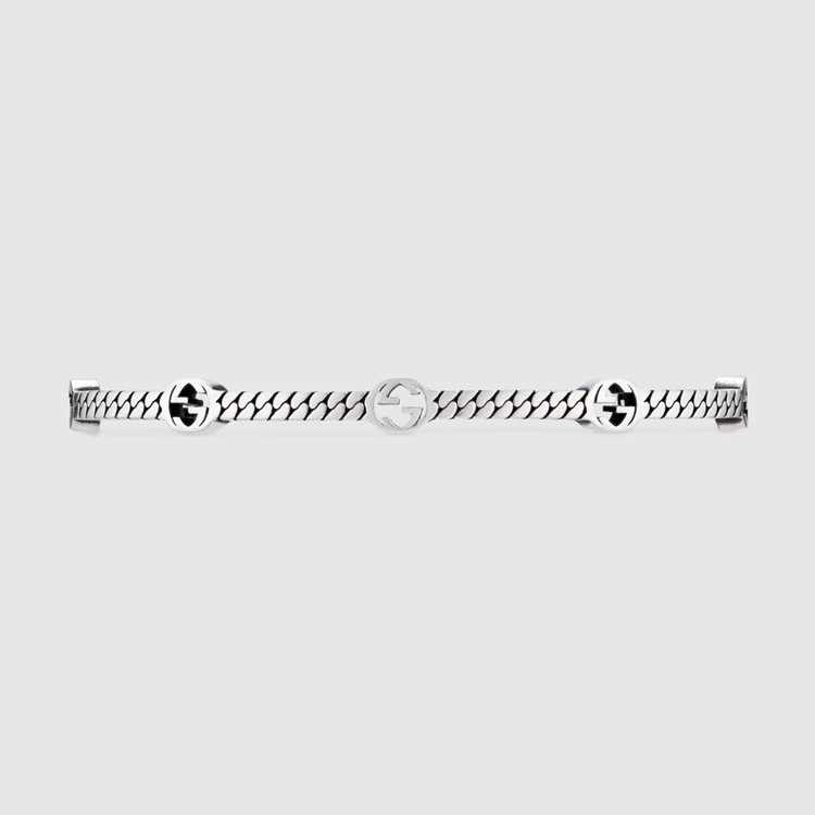 Style 661529 J8400 0728 A symbol from The House archives, The Interlocking G evolves each season—animating New styles in unexpected ways. Here, The versatile symbol appears as a pattern atop of This silver bracelet.