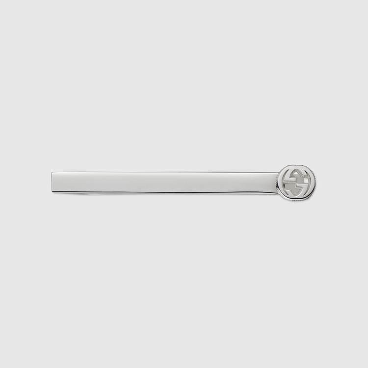 Style 499061 J8400 8106 A tie bar in 925 sterling silver featuring The interlocking G motif With a textured edge.