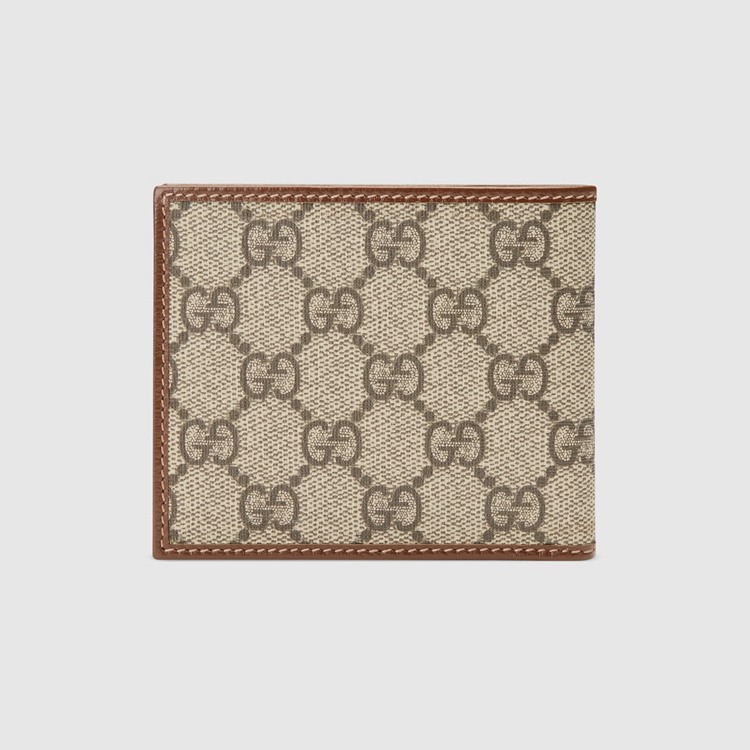 Style 671652 92TCG 8563Archival fabrics and details combine to give a selection of accessories a vintage appeal throughout The Gucci Aria universe. Here, This slim wallet is presented in GG Supreme canvas and enriched by a tonal leather trim and Interlocking G tag.