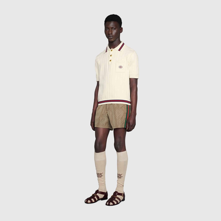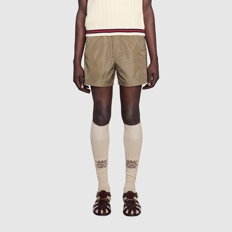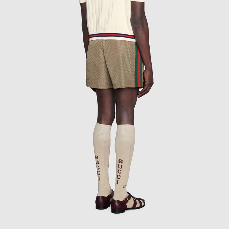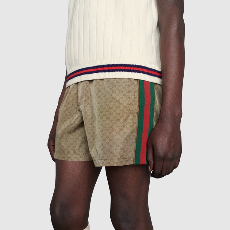 Style 599585 XHAD4 2190Swim shorts Crafted in mini GG waterproof nylon With stripe detailing on The sides. First used in The 1970s, The GG logo was an evolution of The original Gucci rhombi design from The 1930s, and from then it’s been an established symbol of Gucci’s heritage.