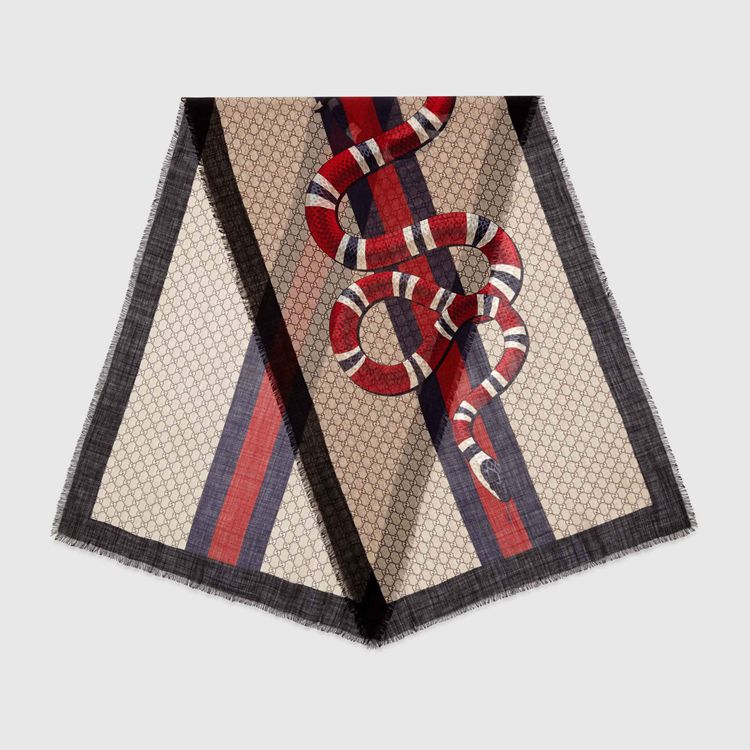 Style 429733 4G200 1065 Inspired by The animal world, Alessandro Michele presents The Kingsnake as One of his signature details, combining it With our iconic Web For The Fall Winter collection. The distinctive print makes a statement on a GG pattern wool.