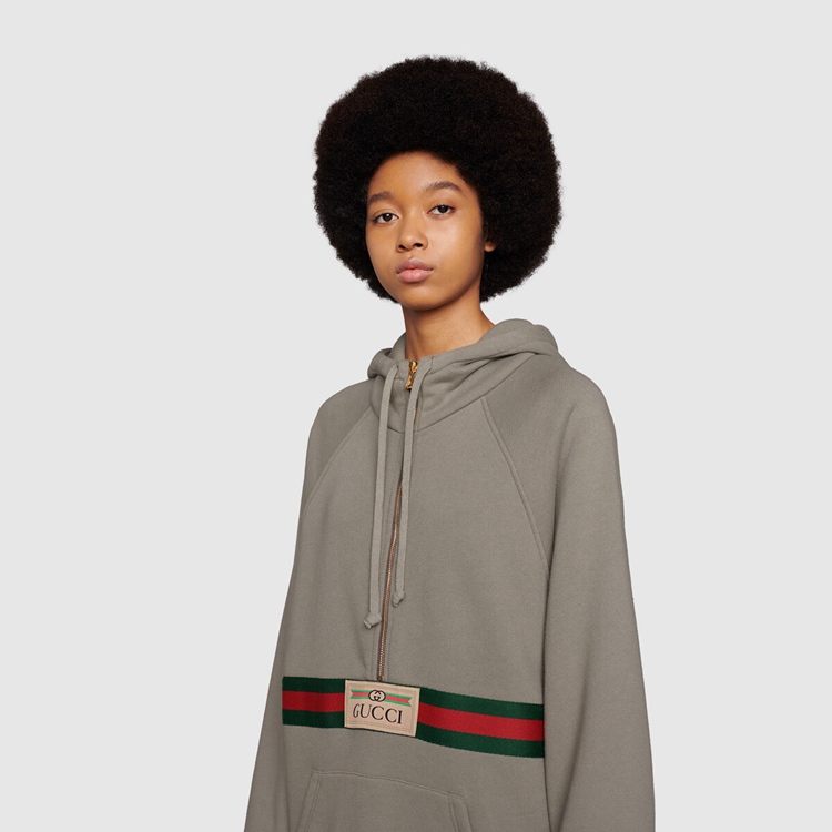 Style 644656 XJC3W 1030 Taking cues from The archives, The Web is a key element of Alessandro Michele’s collections and reinforces The homage paid to Gucci’s past. Paired on This grey sweatshirt With The vintage Gucci logo, it stands as a reference to The equestrian heritage of The House.