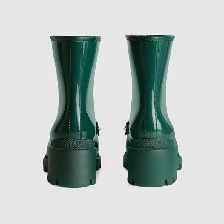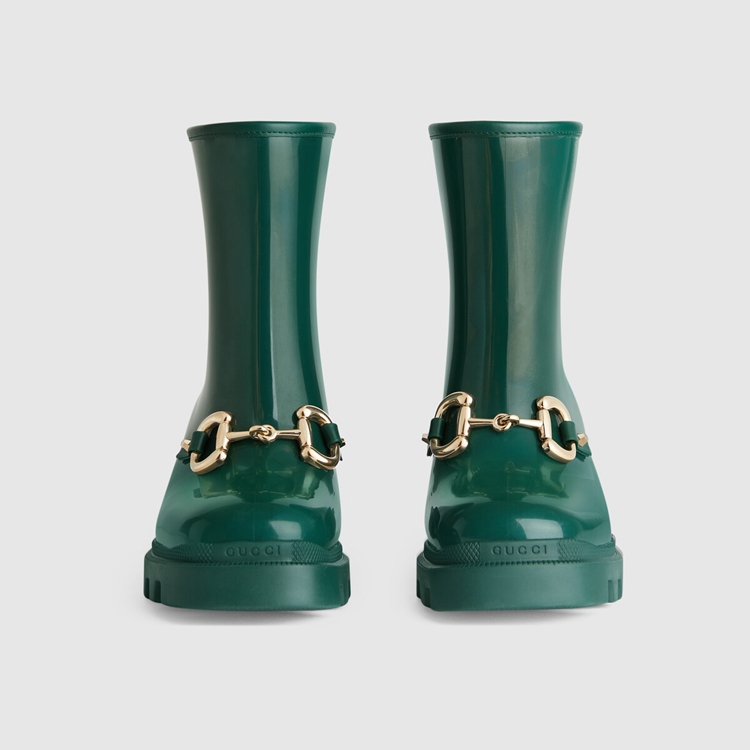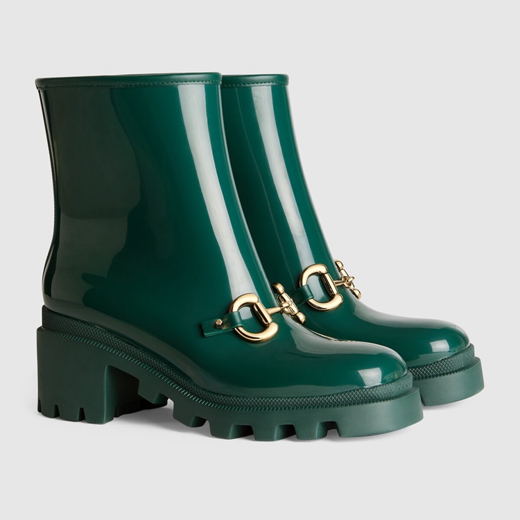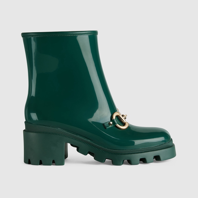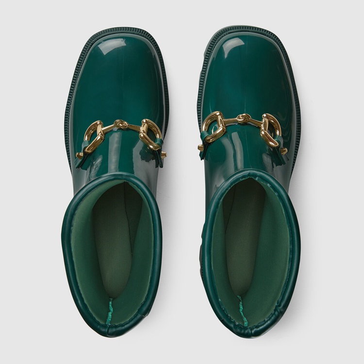Style 670407 JCCP0 3154 This women’s ankle boot is Crafted from glossy rubber in a deep shade of green. A reference to The House’s equestrian heritage, The style is completed by The Emblematic Horsebit hardware.