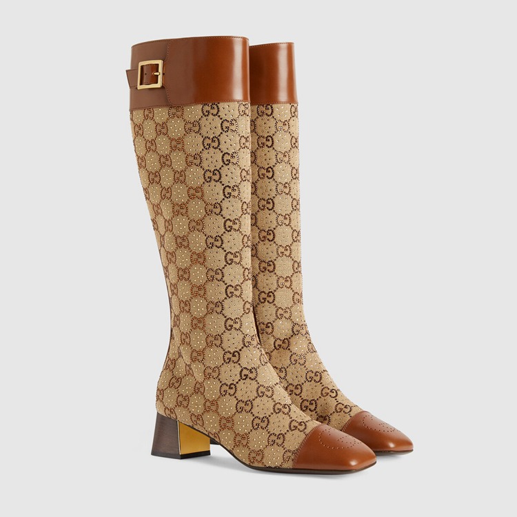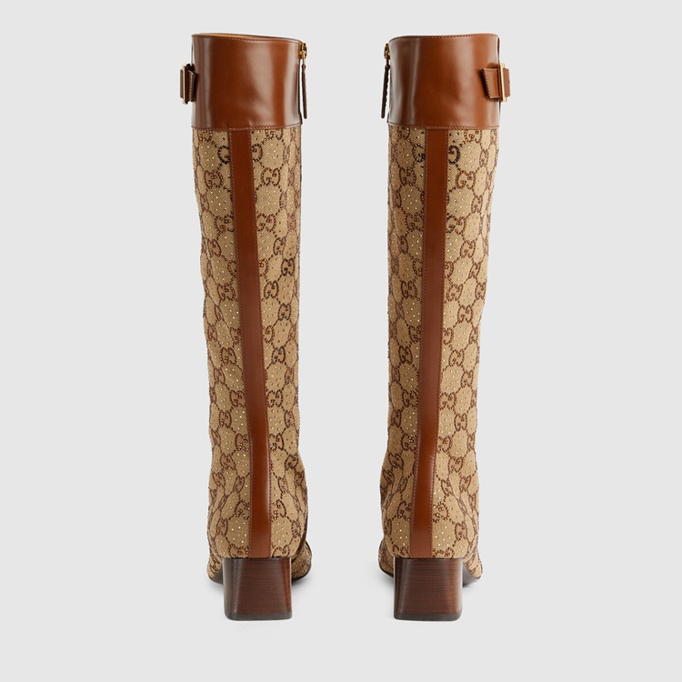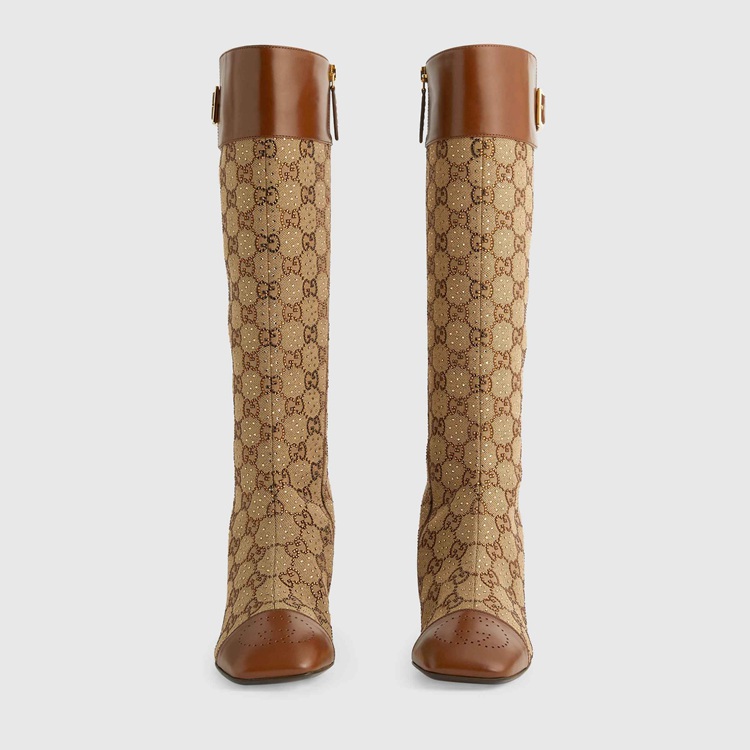 Style 680064 21HH0 2582 The House monogram is celebrated in New ways each season as a tribute to both The past and future. This boot is presents a sparkling take on The GG motif by combining it With petite crystals. The logo feel is enhanced by a subtle perforated Interlocking G detail.