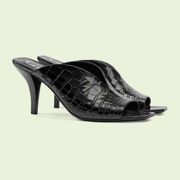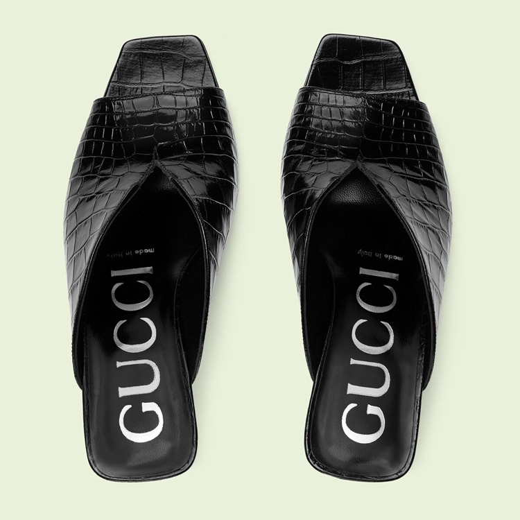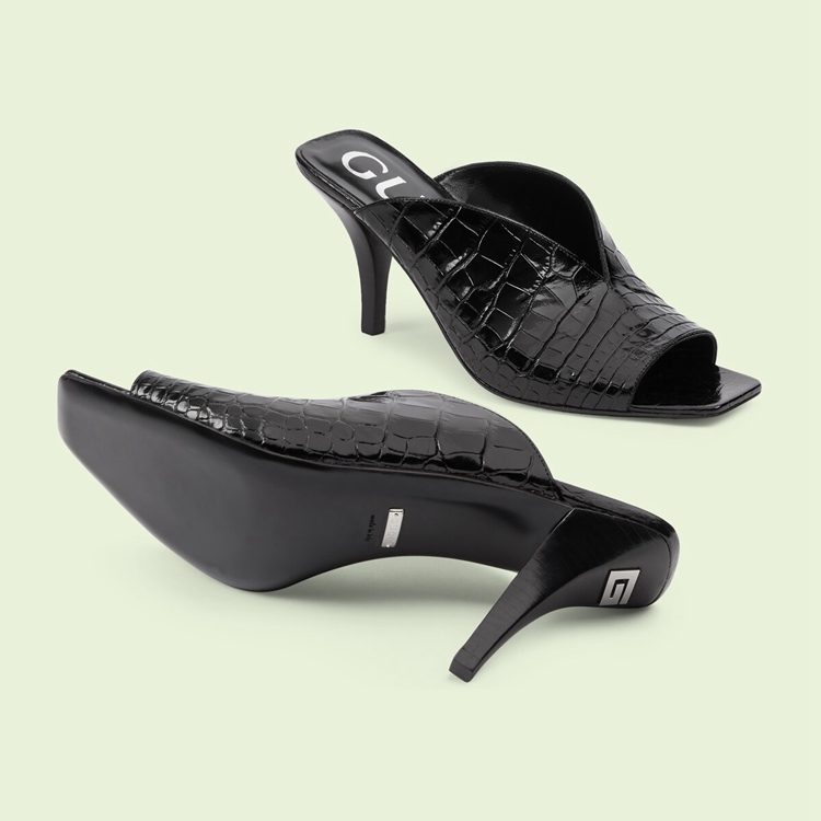 Style 695309 UKQ00 1000From a refined ’50s style to The freedom of The ’60s and wild energy of The ’70s punk scene, animal prints have appeared throughout history as a powerful form of self-expression. Introduced as Part of Gucci Love Parade, crocodile print leather animates This pair of sling-back pumps.