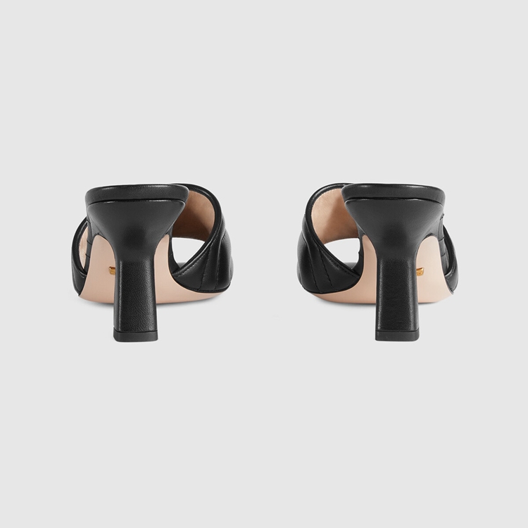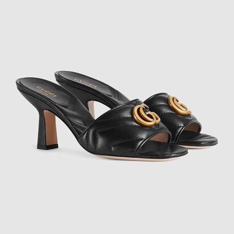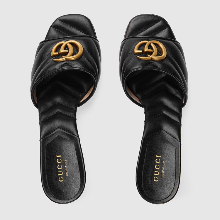 Style 674839 BKO00 1000Textures and colors combine to present a contemporary approach to The Classic slide. Crafted from black chevron matelassé leather, The shoe is completed by The House’s gold-toned monogram hardware.