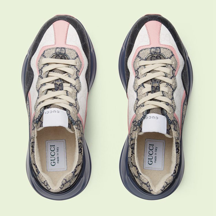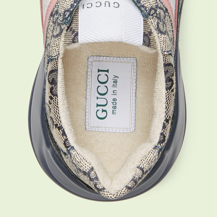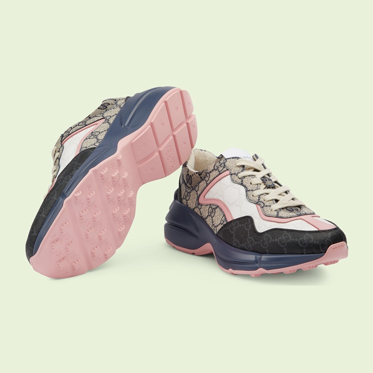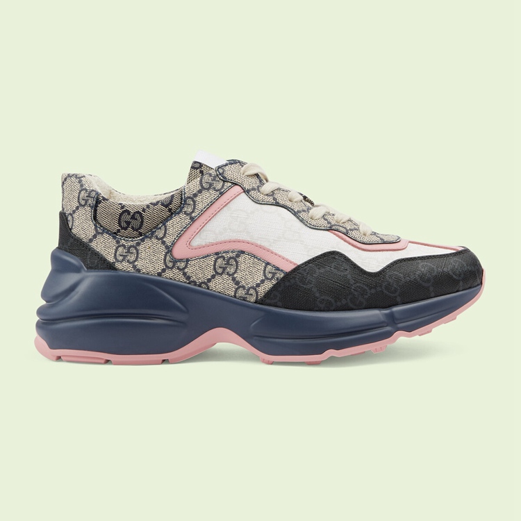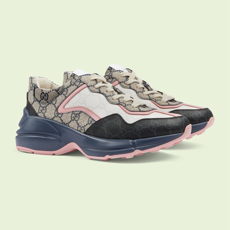Style 692902 UIQ30 1061Mirroring The material’s historic origins, GG Supreme is introduced in a timeless mix of blue and beige For Gucci Love Parade. With a low environmental impact, The canvas has come to The front of each collection decade after decade to become a hallmark of The House. Here, The Classic palette defines This pair of Rhyton sneakers.