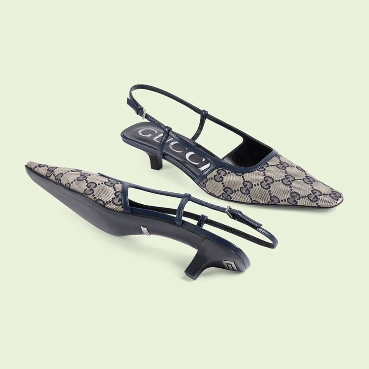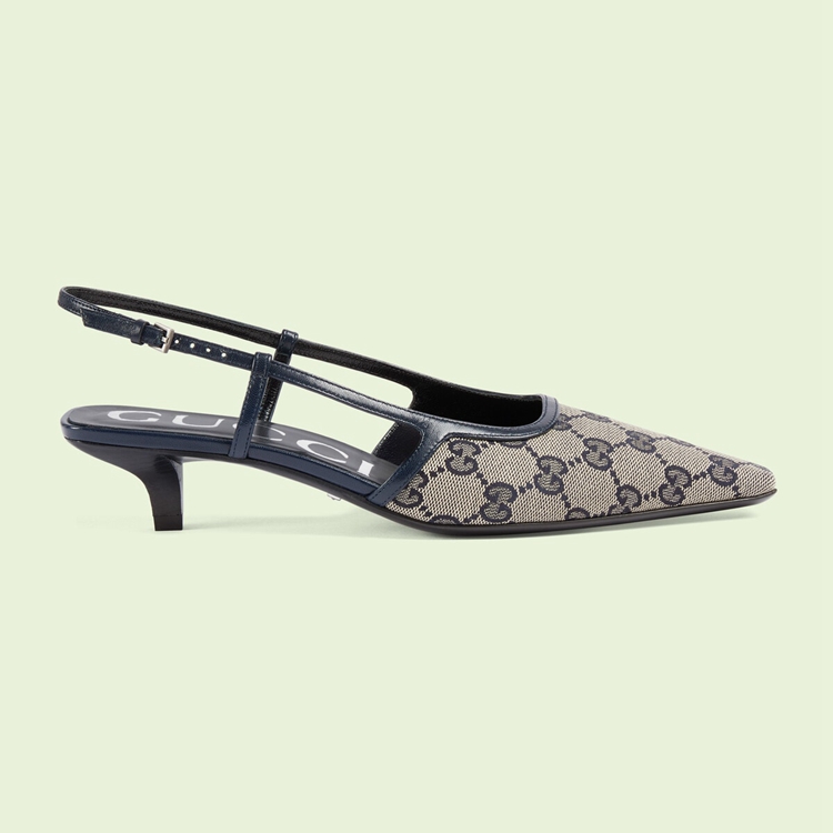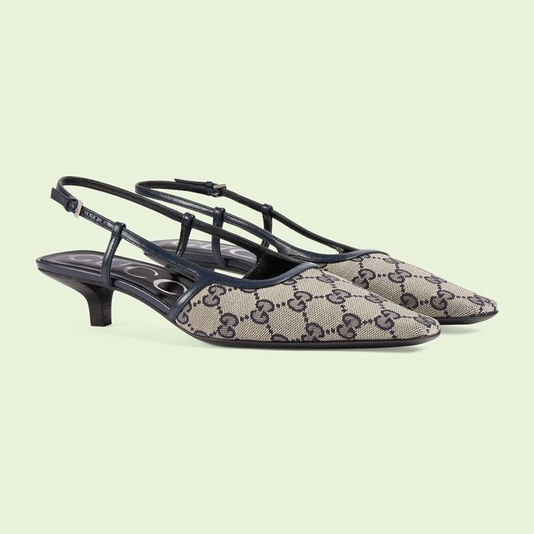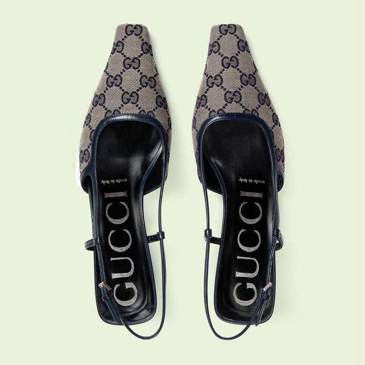 Style 693210 KY980 4061Mirroring The material’s historic origins, GG Supreme is introduced in a timeless mix of blue and beige For Gucci Love Parade. With a low environmental impact, The canvas has come to The front of each collection decade after decade to become a hallmark of The House. Here, The Classic palette defines This pair of slingback pumps.