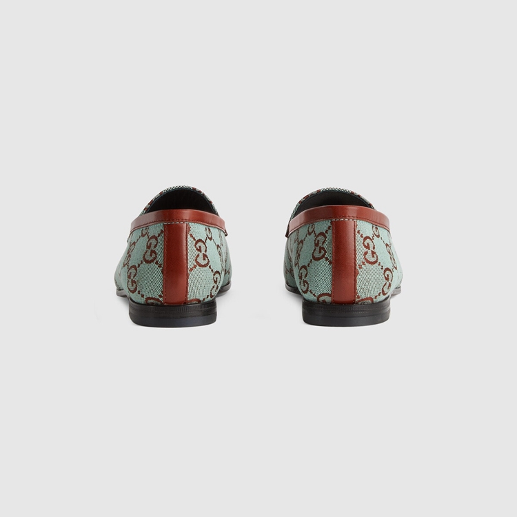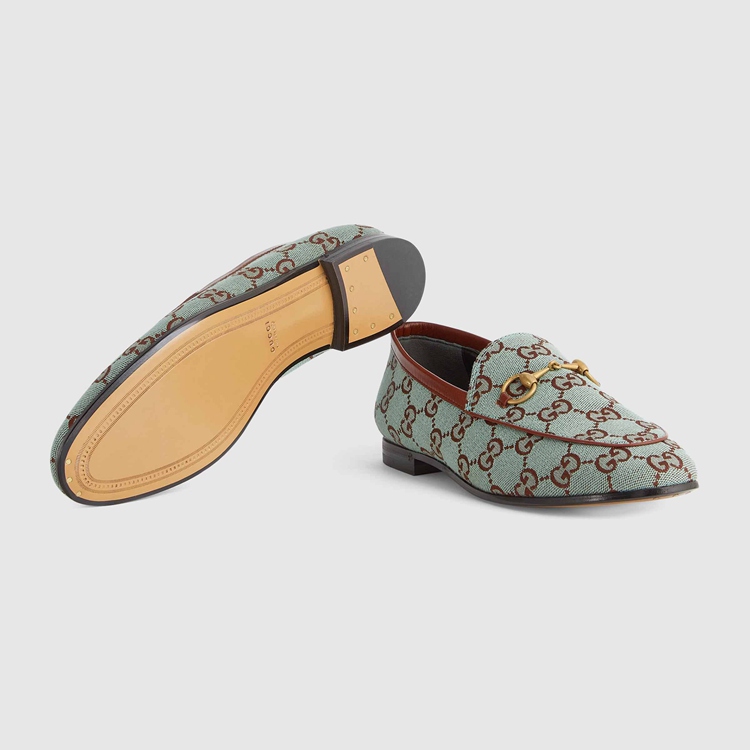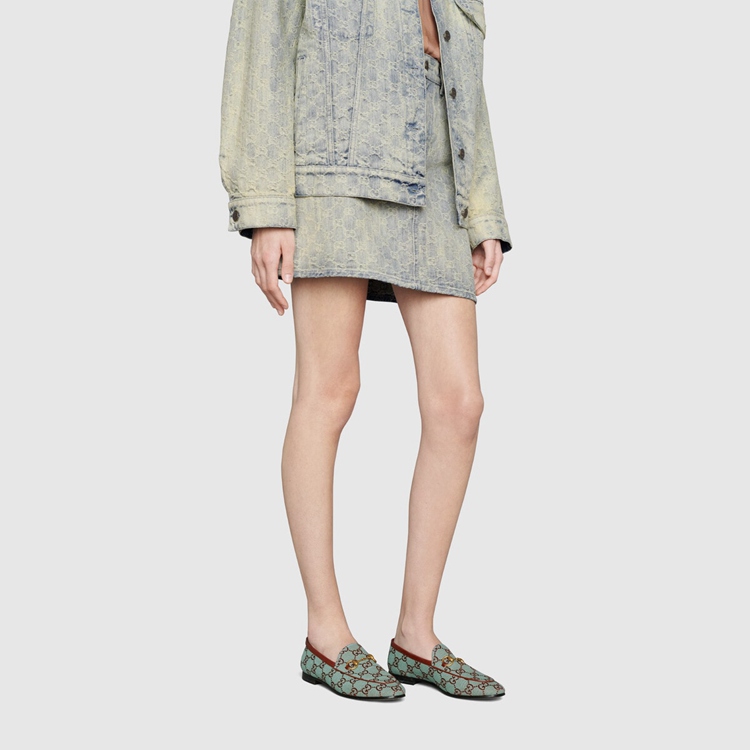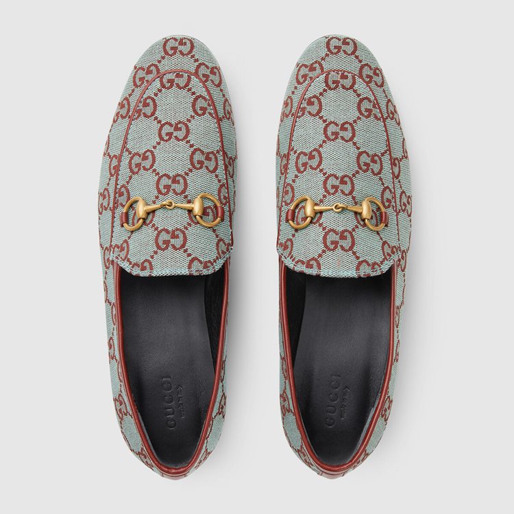Style 431467 9SF10 4985 The Gucci Jordaan loafer is an Emblematic silhouette that spans across seasons. The Classic shape is updated For Gucci Aria in GG canvas—a distinctive fabric taken from The House archives.