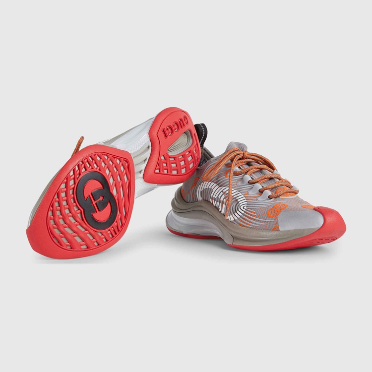 Style 680903 UF310 1270 Designs Inspired by The Sporting world are interpreted through The Gucci lens With standout logo details. This pair of streamlined sneakers is Crafted from monogram technical knit fabric and defined by The Interlocking G. A bi- Color sole completes The style With a playful note of chromatic contrast.