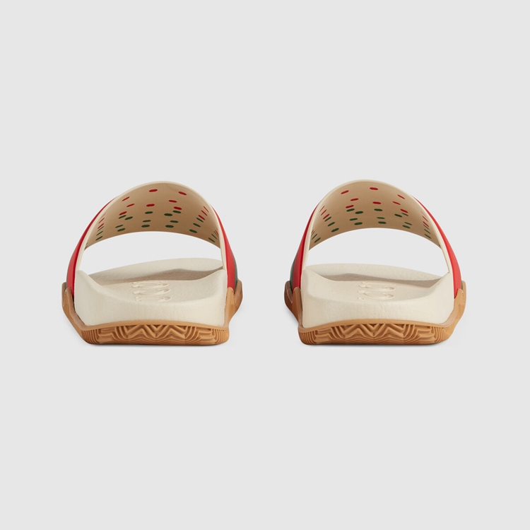 - Red and green Interlocking G striped rubber and white footbed