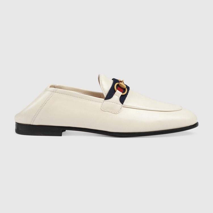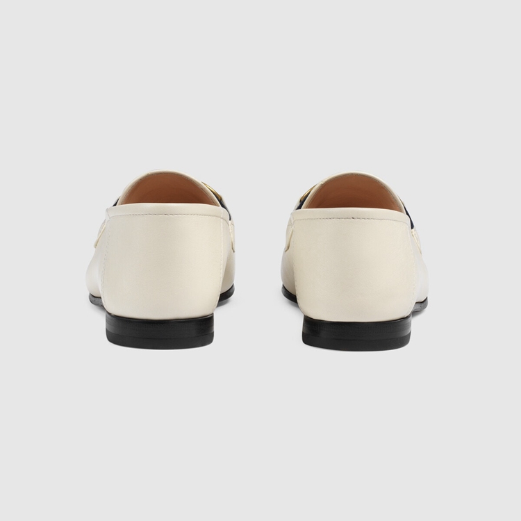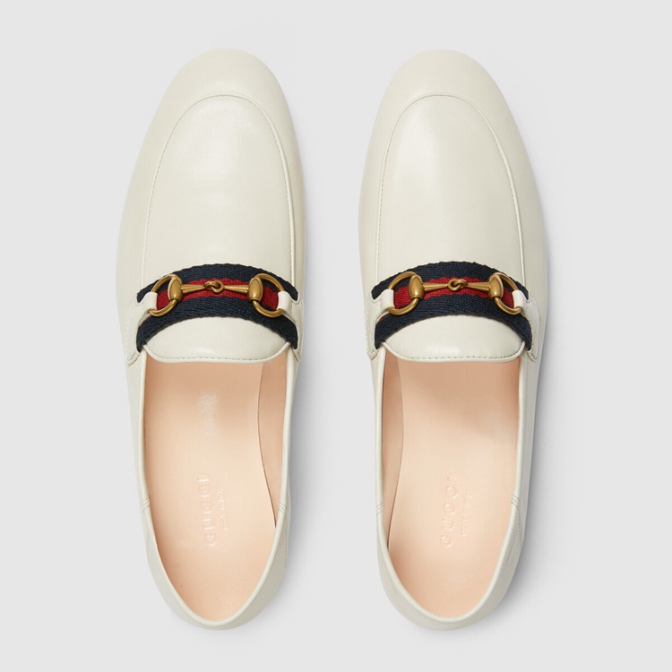 Style 631619 CQXM0 9065 The white leather loafer has a slim shape With a rounded square toe, completed With The House Web and The Horsebit. Since The introduction of its Classic shape in 1950s, The preppy- Inspired shoe has continued its influence, redesigned With different details, in New forms and materials.