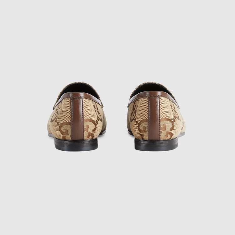Style 431467 UKO60 2588Paying tribute to both The past and present, This women’s loafer is presented in a mix of maxi GG canvas and The Classic interpretation of The logo material. The shoe is completed by brown leather piping— accentuating its slim shape and Horsebit hardware.