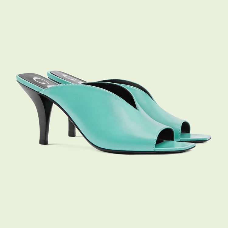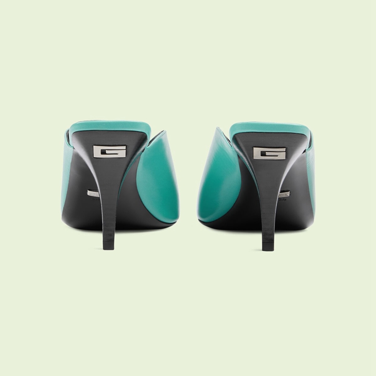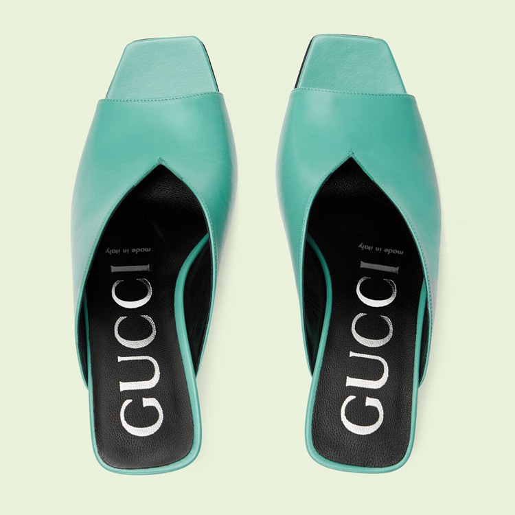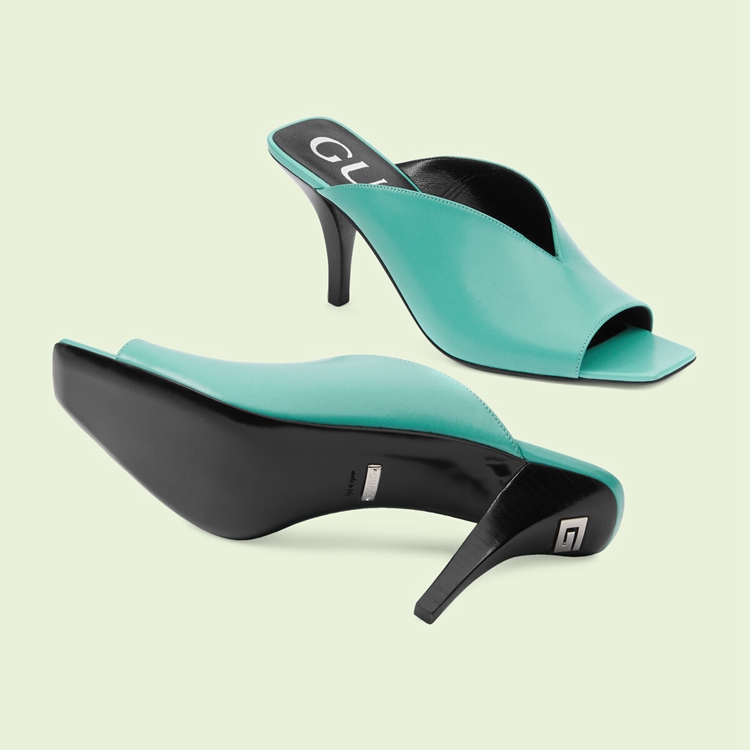 Style 695309 C9D00 3922Throughout Gucci Love Parade, minimalist accessories With defined silhouettes and monot One shades challenge The traditonal conception of glamour. This pair of sandals embraces The idea With its bright shade of turquoise and v-shaped silhouette.