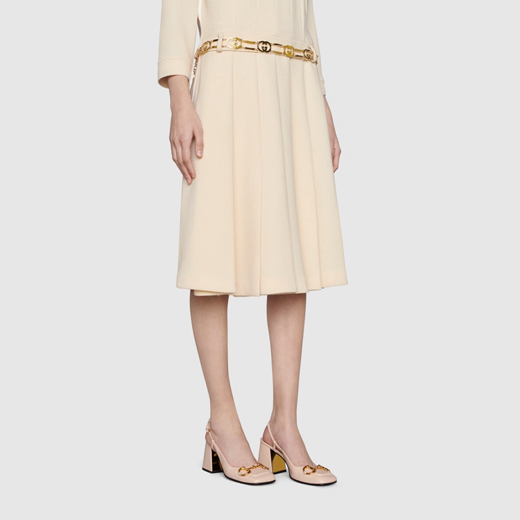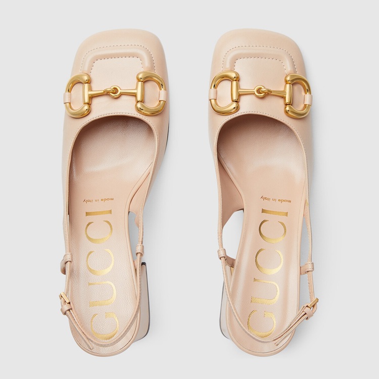 Style 643892 C9D00 6705 A slingback pump With vintage accents such as a square shaped toe and sculpted block heel. A code from The archives, The Horsebit detail connects The style to The House’s equestrian roots. The style is presented in light pink leather.