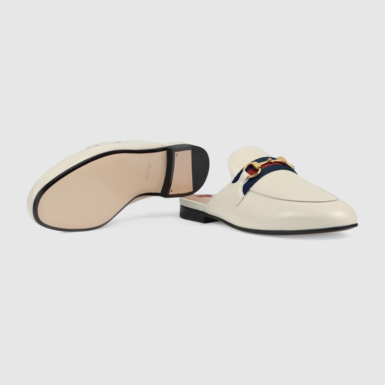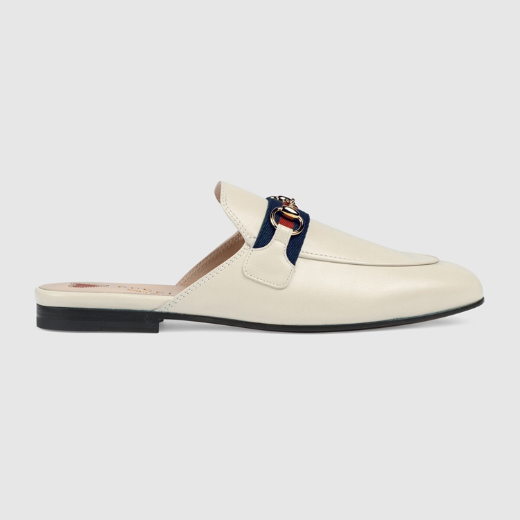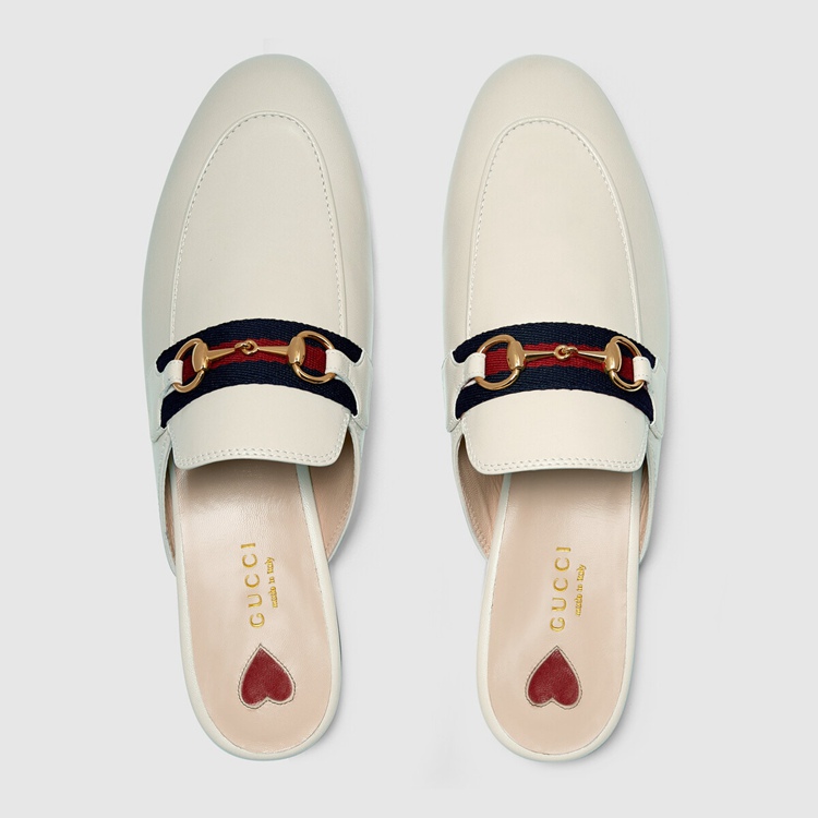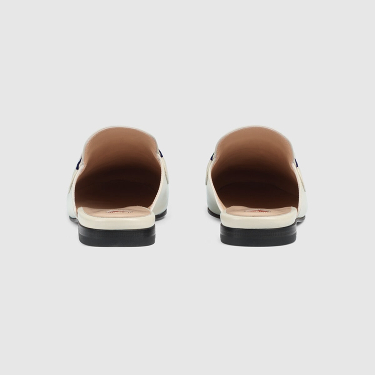 Style 629084 CQXM0 9065 The Princetown brings together different chapters from The House’s history For Pre-Fall 2020. Since its introduction, The slipper has become a mainstay in The House’s collection. Here, Crafted from white leather, The shoe combines two Emblematic symbols from The archives that speak to Gucci’s equestrian heritage: The Web and The Horsebit.