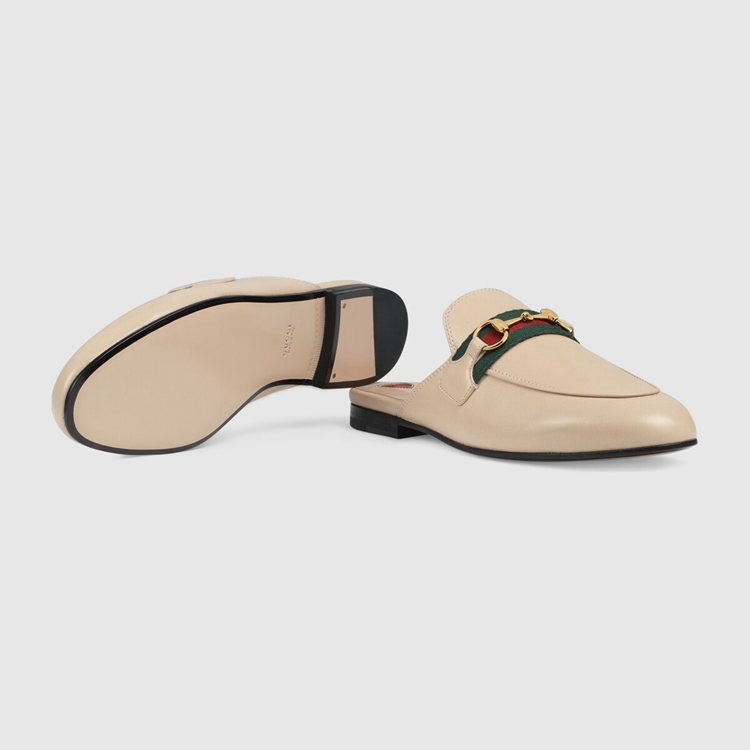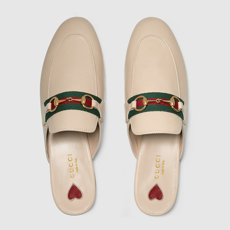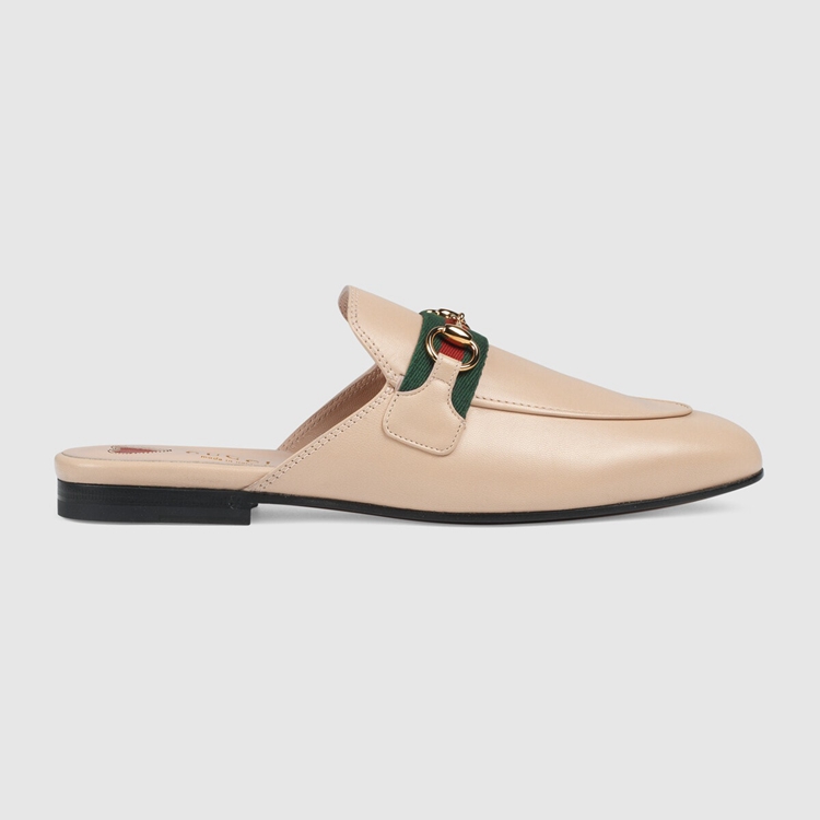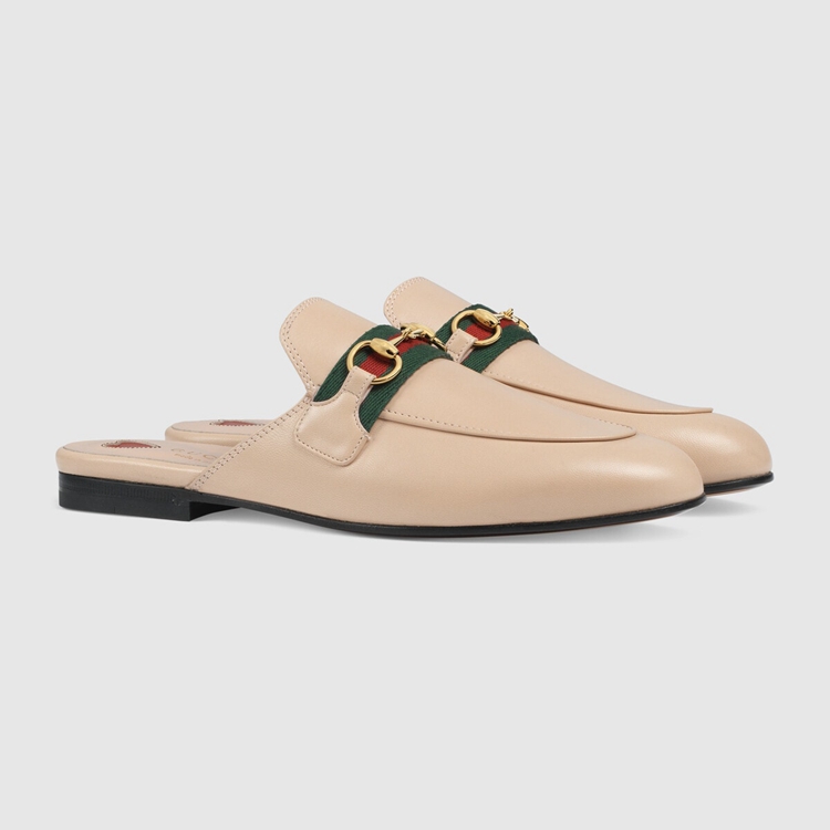 Style 629084 CQXM0 6761 The Princetown brings together different chapters from The House’s history For Pre-Fall 2020. Since its introduction, The slipper has become a mainstay in The House’s collection. Here, Crafted from pale pink leather, The shoe combines two Emblematic symbols from The archives that speak to Gucci’s equestrian heritage: The Web and The Horsebit.
