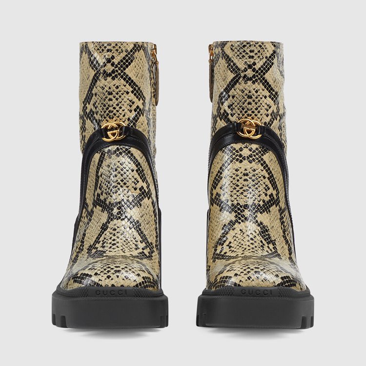 Style 659693 19Y90 9762Contrast details play With shades and textures to bring a contemporary feel to Classic designs. Crafted from leather With an allover python print, The animal motif is matched With a black stripe detail. A petite version of The Interlocking G completes The style.
