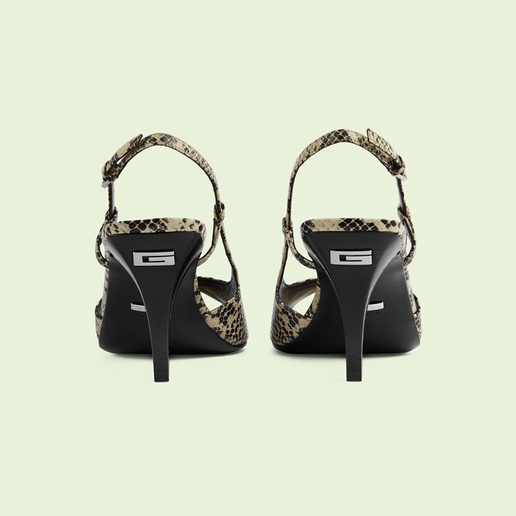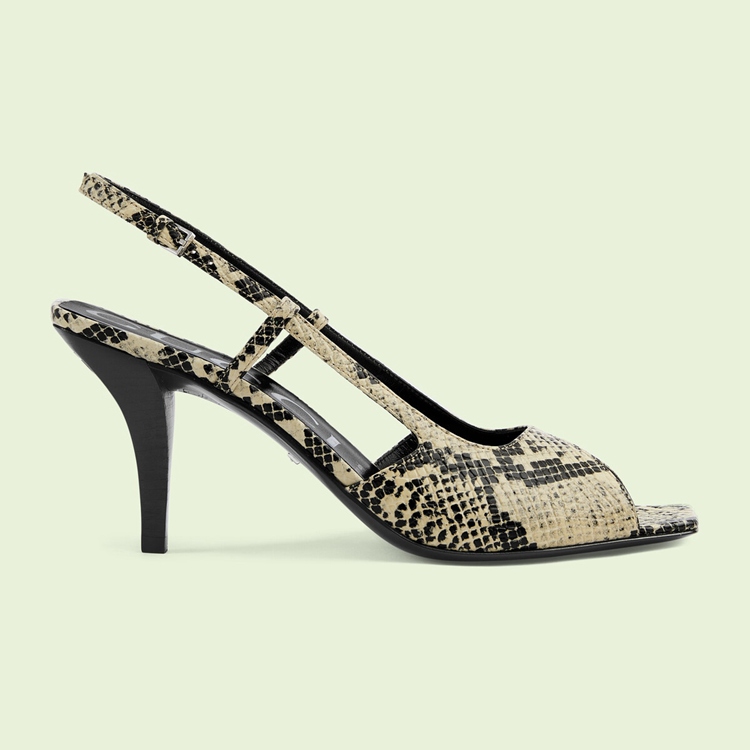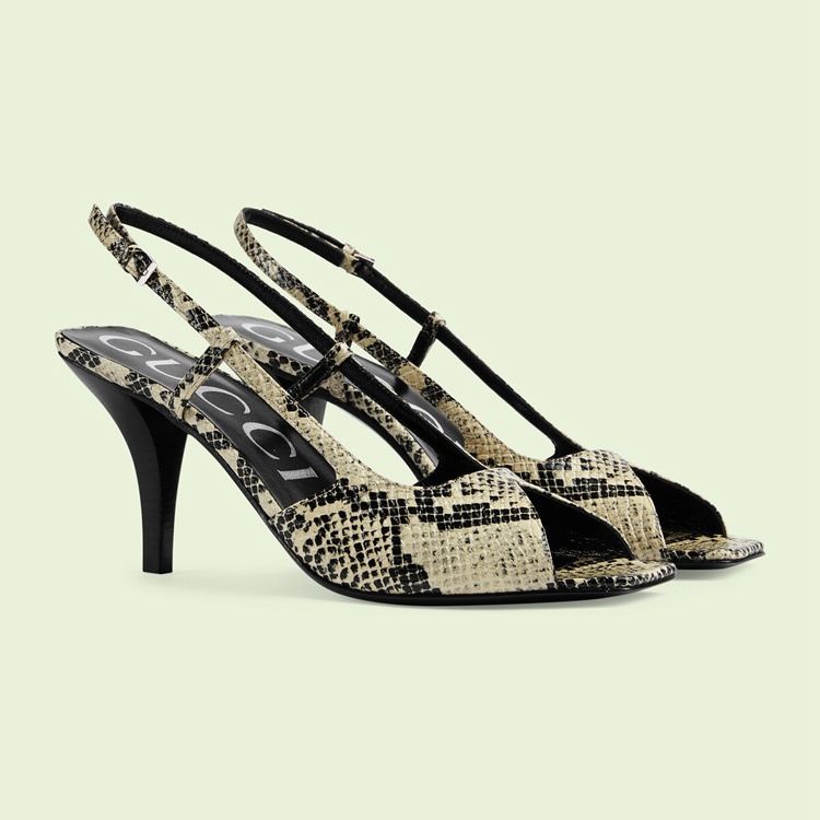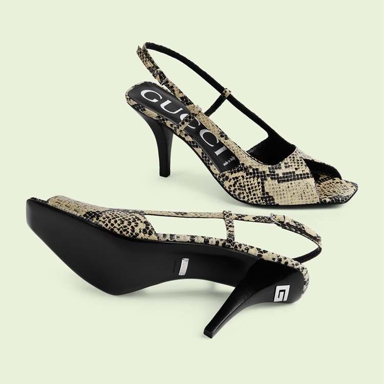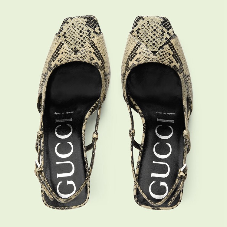 Style 695307 19Y00 9719From a refined ’50s style to The freedom of The ’60s and wild energy of The ’70s punk scene, animal prints have appeared throughout history as a powerful form of self-expression. Introduced as Part of Gucci Love Parade, python print leather animates This pair of mid-heel sling-back pumps.