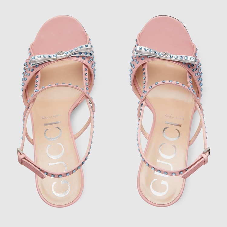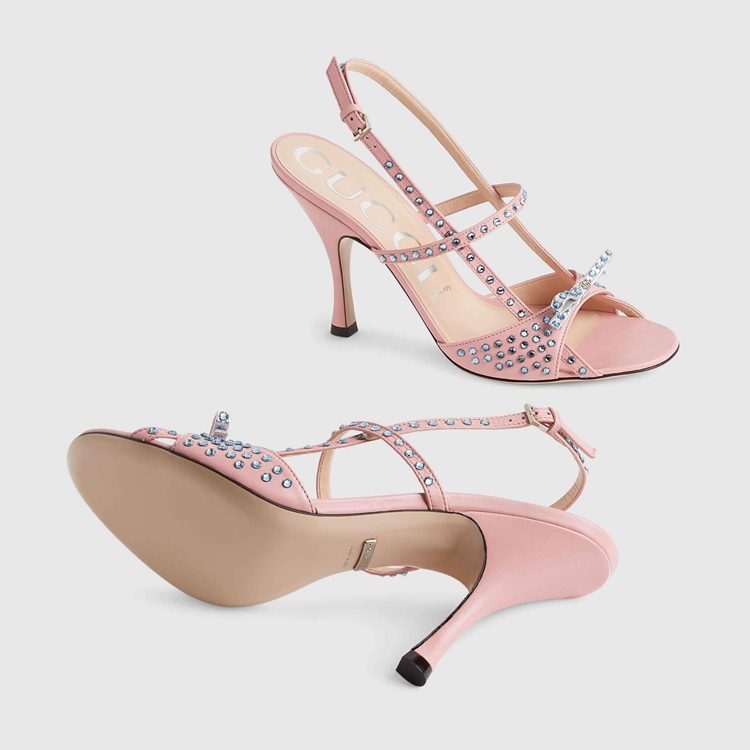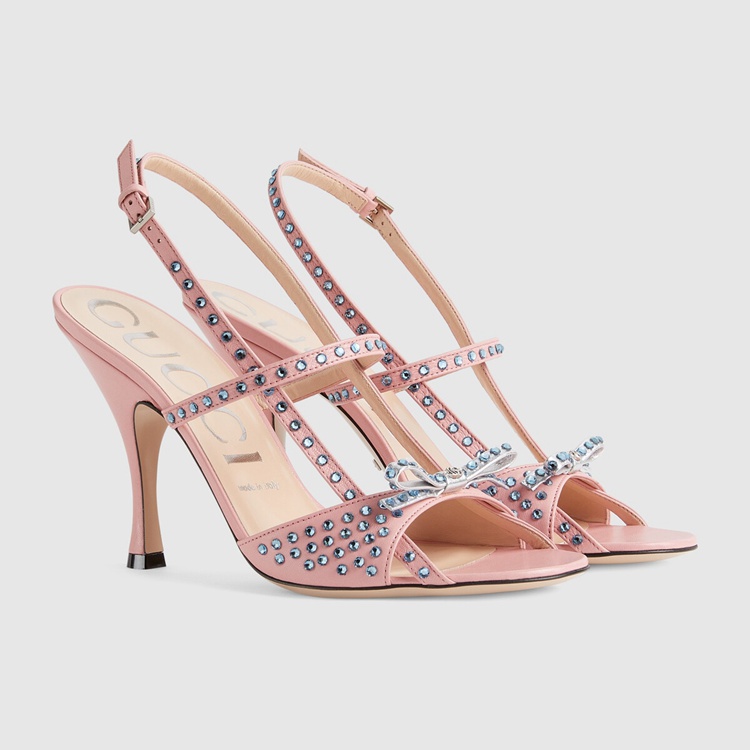 Style 674785 CQXH0 5864Delicate details take inspiration from old-time glamour With an allover crystal motif. Expressing The House’s fascination With other times and places, The design continues to interpret This theme through pale pink leather and a petite bow.
