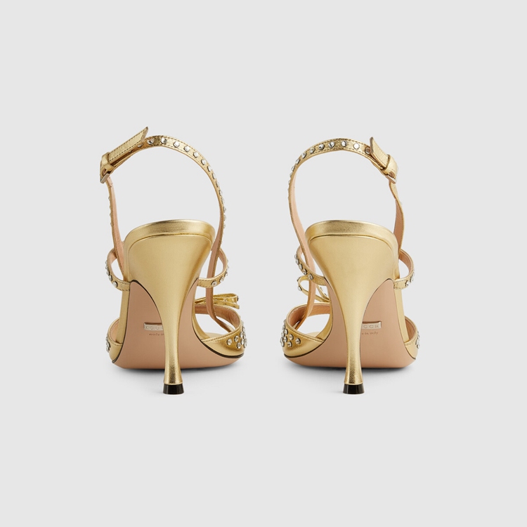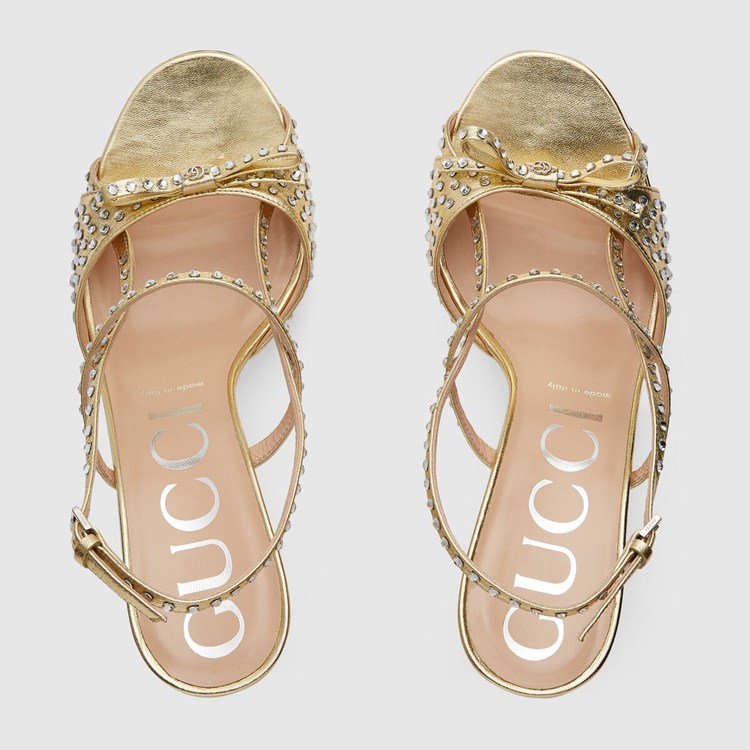 Style 674785 B8B00 8053Delicate details take inspiration from old-time glamour With an allover crystal motif. Expressing The House’s fascination With other times and places, The design continues to interpret This theme through gold-toned metallic leather and a petite bow.