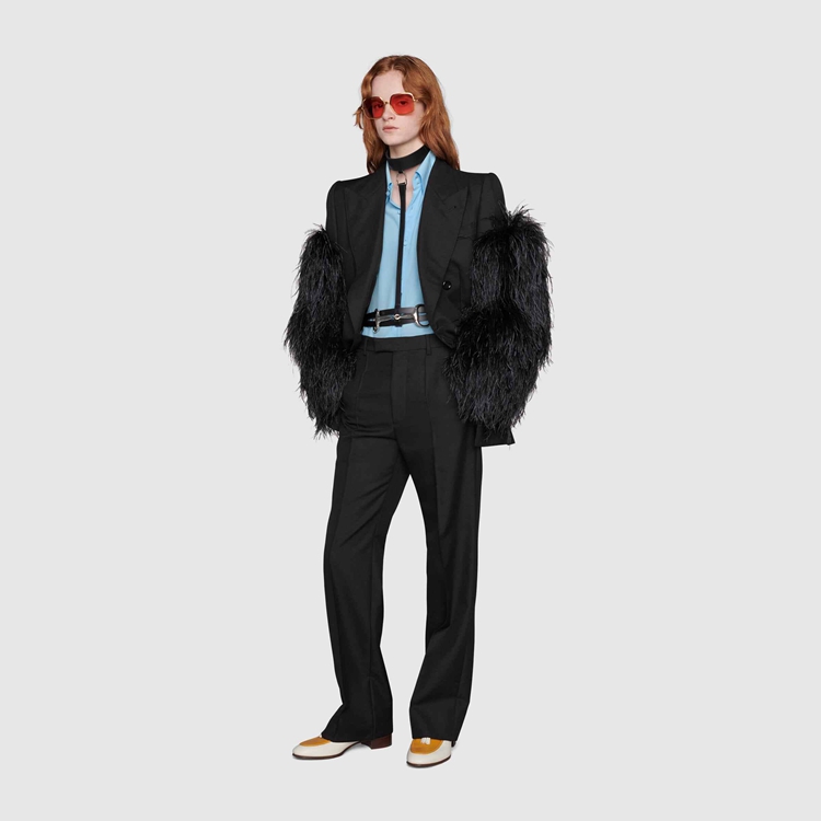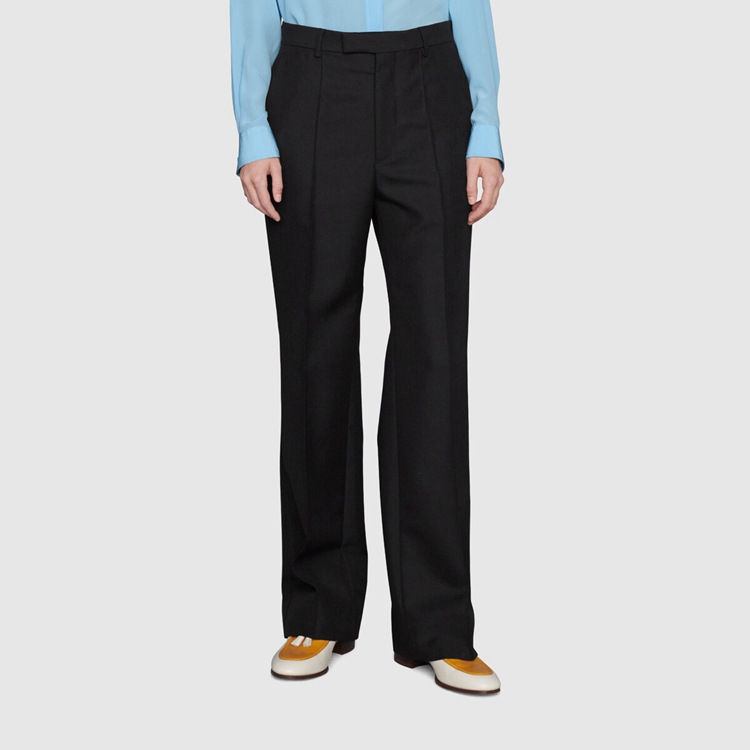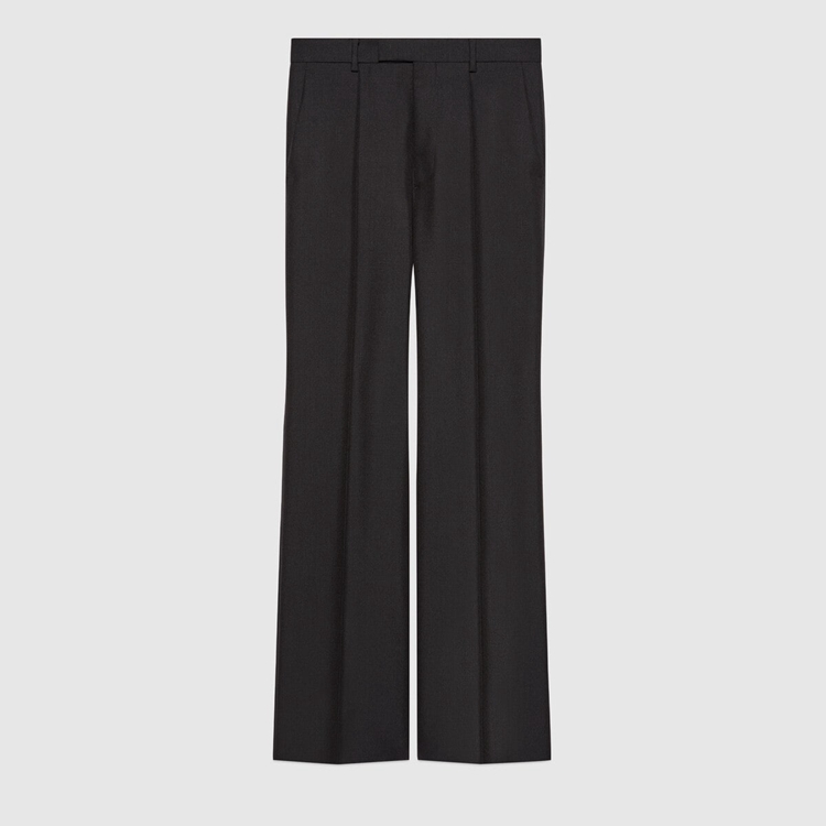 Style 672086 Z6724 1000In Alessandro Michele’s vision, there is no distinction between a man’s wardrobe and a woman’s wardrobe, and by infusing typically feminine details into The men’s collection, and vice versa, The lines between The two worlds blur creating looks characterized by an everlasting neutrality. This wool mohair pant has a Classic shape With leg seam detail and internal curtained waistband.