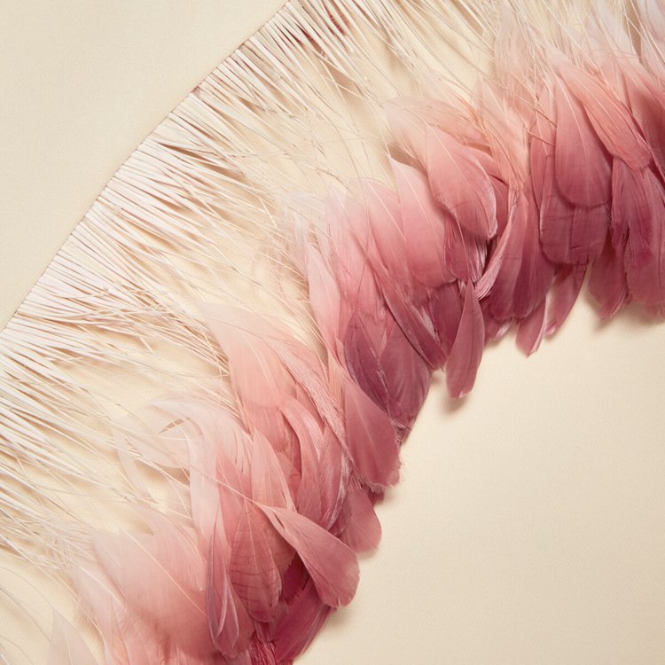 - White cady crepe wool silk With pink feathers