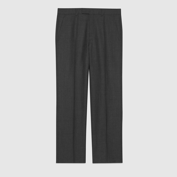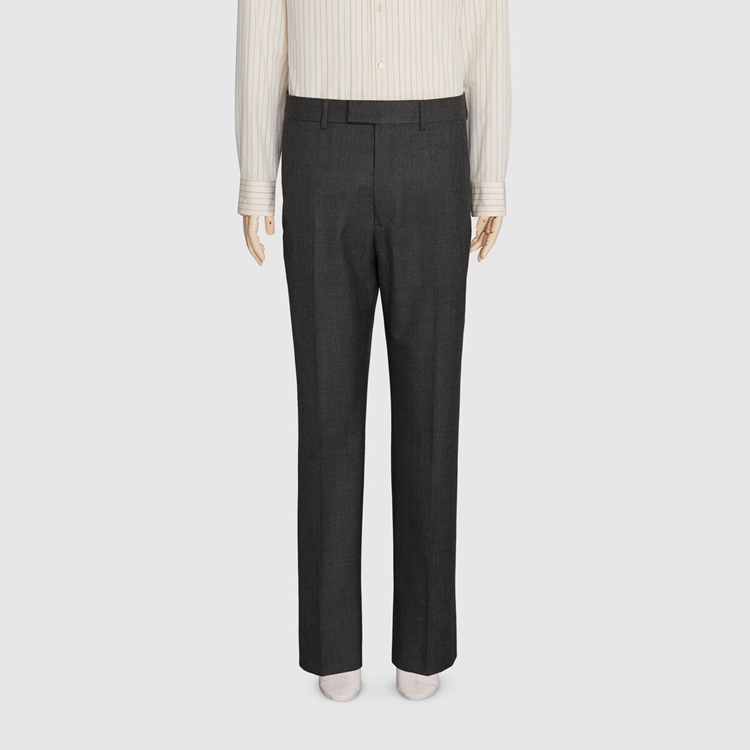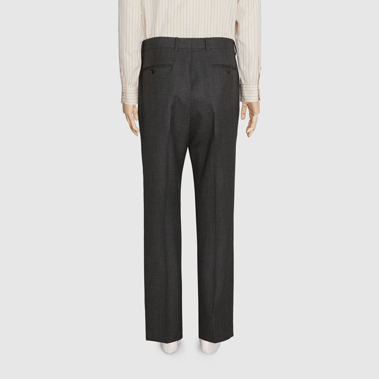 Style 630062 ZAC6H 1200 A tailored wool pant, designed With a straight leg and horn buttons. Part of a streamlined aesthetic that instills a contemporary spirit into Classic Designs and fabrics, Gucci explores a New approach to traditional tailoring.