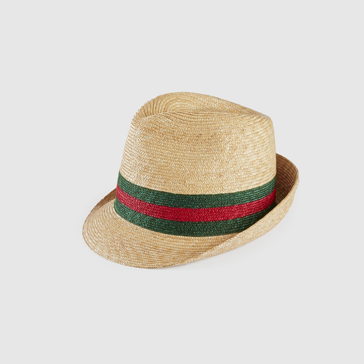 Style 434760 K0M00 9666 A reference to The Marine feel permeating The Pre-Fall 2018 collection, The straw bucket hat is finished With a woven green and red stripe that pays homage to The House Emblematic Web.