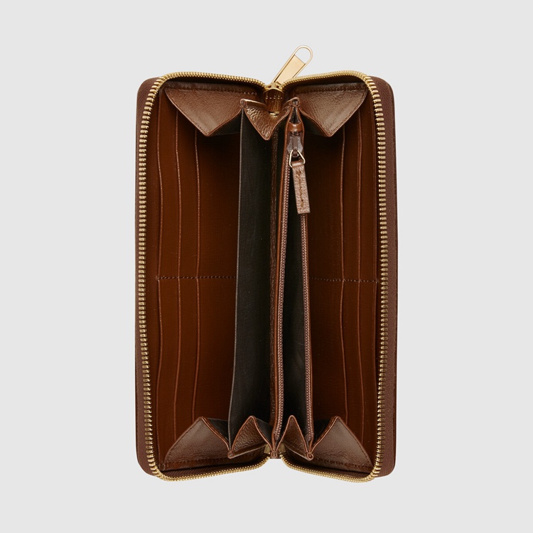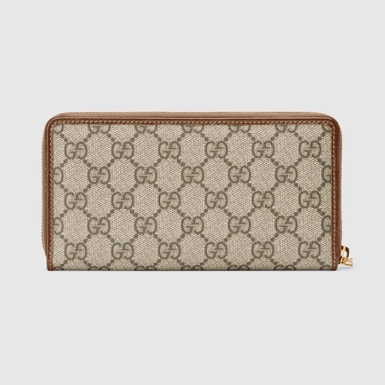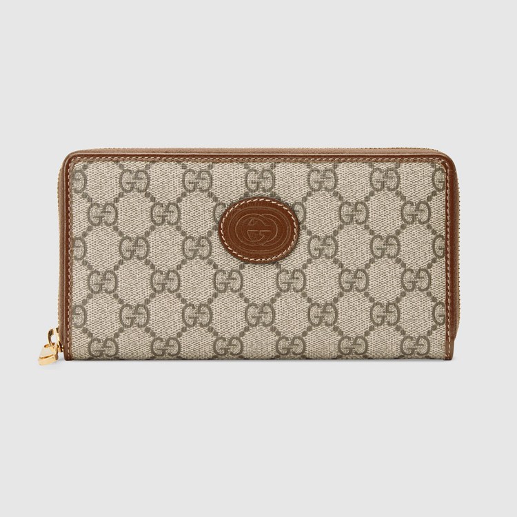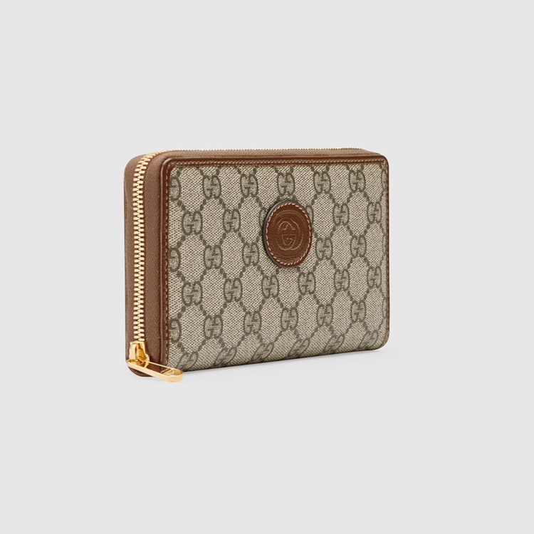 Style 673003 92TCG 8563Different interpretations of The House logo come together atop This zip wallet. Crafted from GG Supreme canvas, The accessory is completed by an oval Interlocking G tag. The combination of The two archival details imbue The design With a vintage appeal.